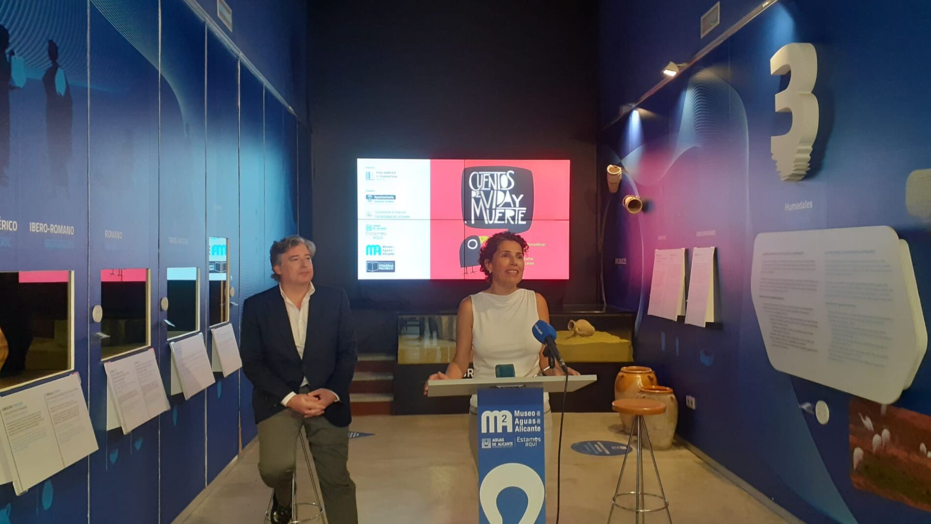 El Museo de Aguas de Alicante ha acogido hoy la presentación del primer festival de narración oral “Cuentos de Vida y Muerte”, que tendrá lugar en los Pozos de Garrigós, ubicados en sus instalaciones en la plaza del Puente de Alicante, el próximo día 31 de octubre y en conmemoración del Día de los Fieles Difuntos. La rueda de prensa ha contado con la participación de Raquel López, presidenta de la Asociación Palabras y Cuentos, y Narradora Oral; y de Martín Sanz, director de Comunicación y Relaciones Institucionales de Aguas de Alicante.