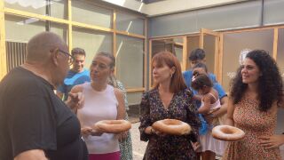 El Ayuntamiento de Alicante ha recibido a los integrantes de la Mayordomía de Fiestas del Raval Roig, que como cada año han hecho entrega del tradicional “panquemao” a la concejala de Fiestas, Cristina Cutanda, la concejala de Comercio, Lidia López y la edil de Bienestar Social, Begoña León.