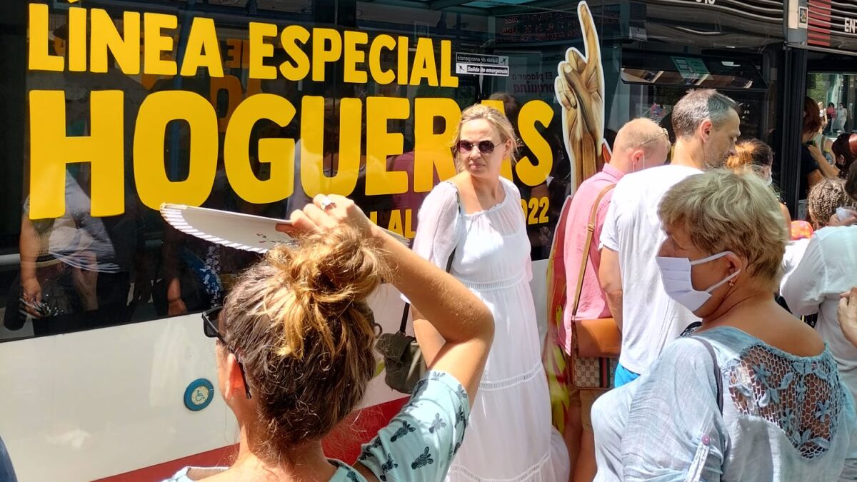 Uno de los datos significativos de la mayor presencia de público en estas fiestas de Hogueras de 2022 ha sido el uso del transporte público y, de manera particular, la línea de autobús urbano gratuito para visitar las Hogueras Especiales, habilitado por el Ayuntamiento de Alicante y la empresa concesionaria Vectalia.