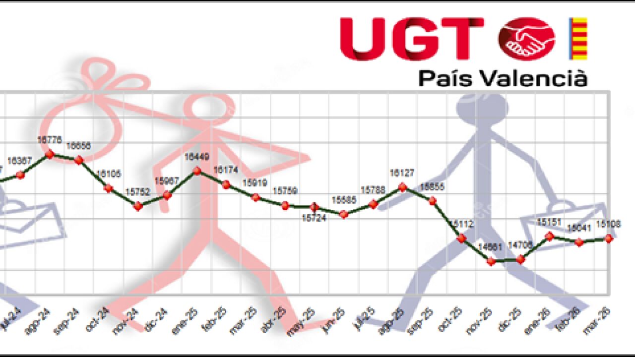 Según las cifras publicadas por LABORA, el paro registrado en el mes de marzo en la Ribera, se ha situado en 15108 personas, es decir, 67 parados más que en el mes de febrero, con un incremento mensual del 0’45%.