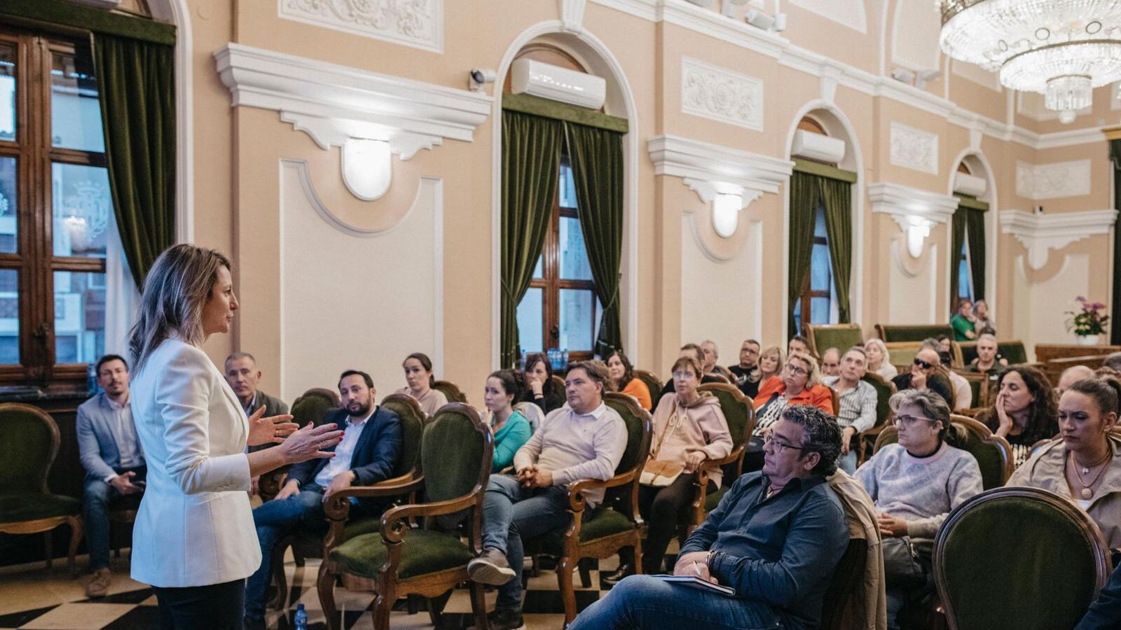 La alcaldesa de Castellón, Begoña Carrasco, se ha reunido este jueves con el conjunto de vendedores del Mercado Central para presentarles el proyecto de reforma integral y puesta en valor del edificio.