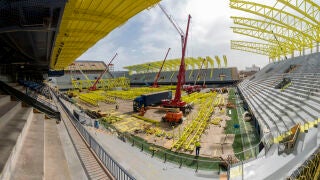 Durante los últimos cuatro meses la actividad ha sido frenética, toda vez que la imagen del estadio comienza a tomar forma con el paso de los días. A lo largo de la próxima semana se comenzará el montaje del arco que servirá para cubrir la grada del fondo norte y que dará la imagen más espectacular de la nueva construcción: "Estará unos 43 metros sobre el terreno de juego y montarán una grúa de mil toneladas para su alzamiento", afirmaba Fernando Roig . Los cálculos del club pasan por comenzar a trabajar en el nuevo terreno de juego a principios de diciembre:"las obras van en tiempo y el programa es que el uno de diciembre se vacíe el interior de grúas y hierros. Levantaremos todo el césped en ese periodo para instalar tuberías con un segundo drenaje a poca profundidad y que será extraordinario. Sobre el 10 de diciembre instalaremos el césped para que el 31 se pueda jugar sí o sí".