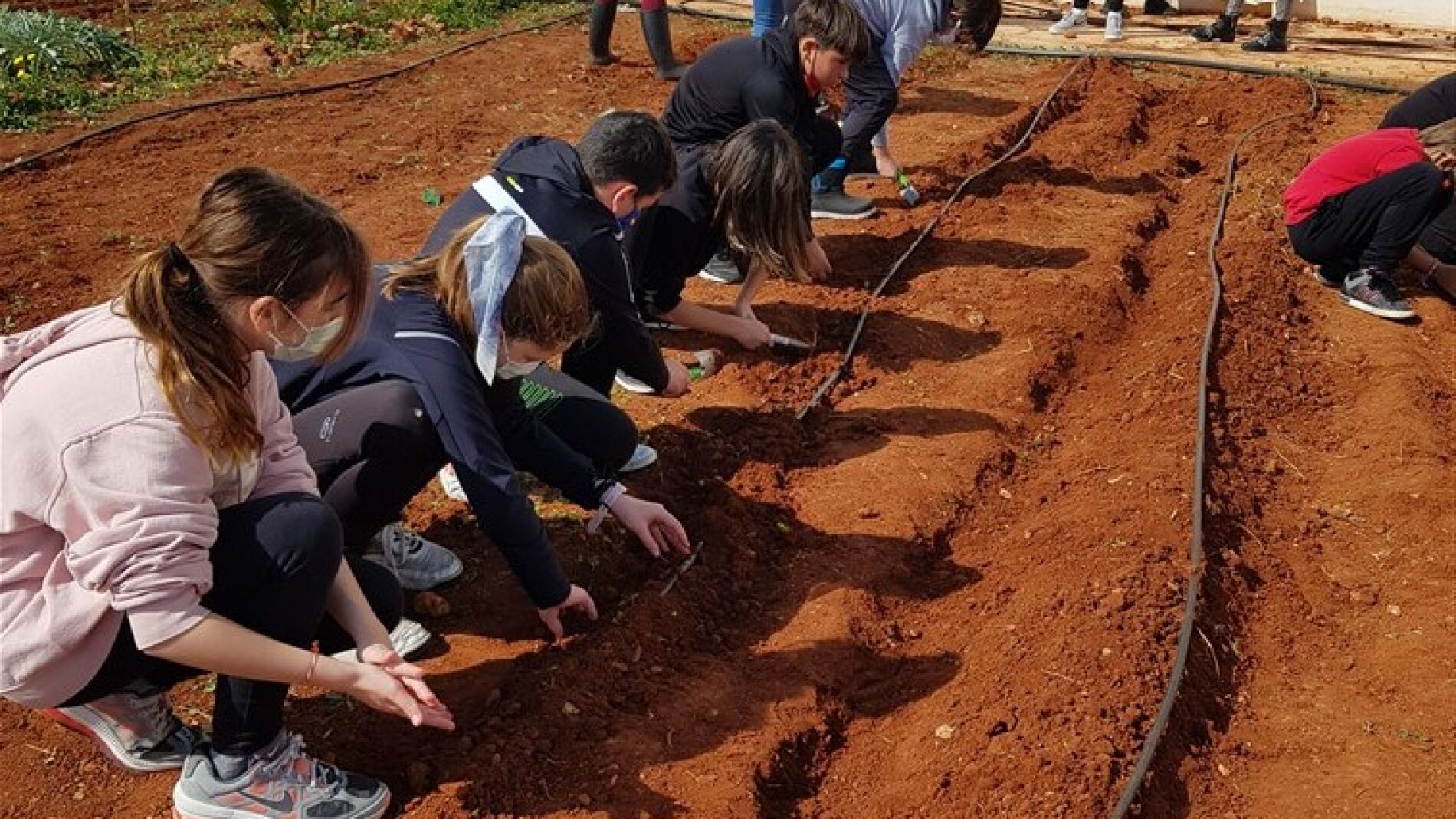 Los dos técnicos de animación sociocultural también les han explicado cómo funciona el riego gota a gota y la importancia de ahorrar agua.