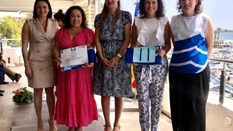 La alcaldesa de Almassora, Merche Galí, ha recogido hoy la bandera azul para la playa de Benafelí durante el acto de entrega celebrado en Orihuela.