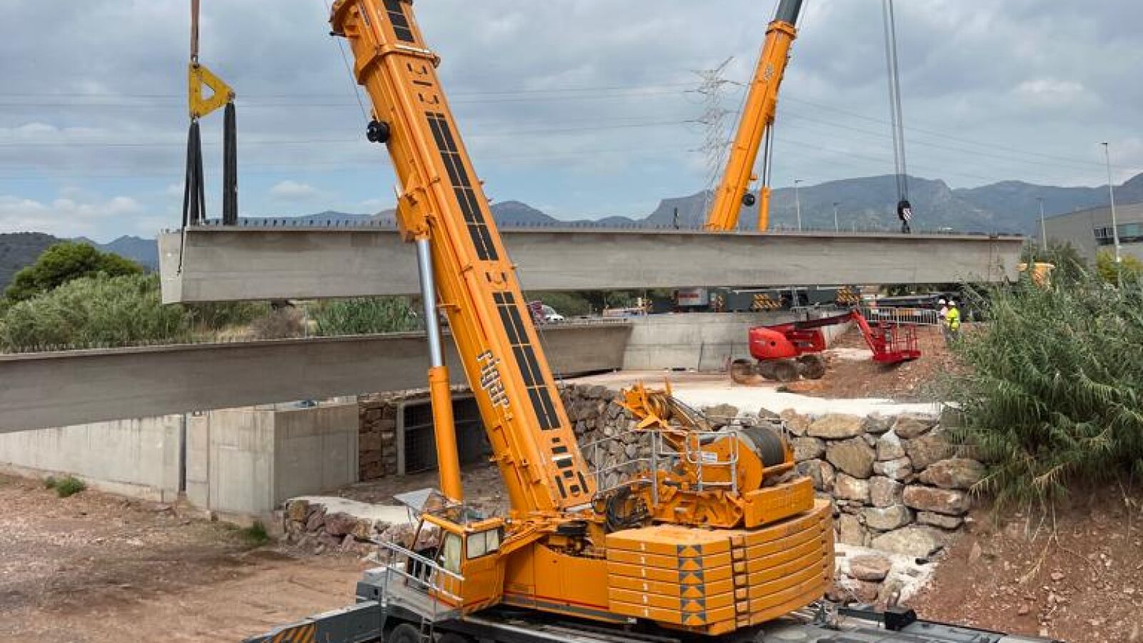 La constructora ya ha instalado las tres vigas de apoyo, cada una mide 43 metros y pesa 140 toneladas, por lo que se ha necesitado un dispositivo especial de transporte, tráfico y seguridad.