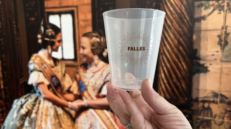 El Ayuntamiento de Borriana en colaboración con la Junta Local Fallera distribuye 5.000 vasos falleros reutilizables de medio litro y libres de Bisfenol A, totalmente gratis, entre las comisiones falleras del municipio para la semana de Fallas 2023.