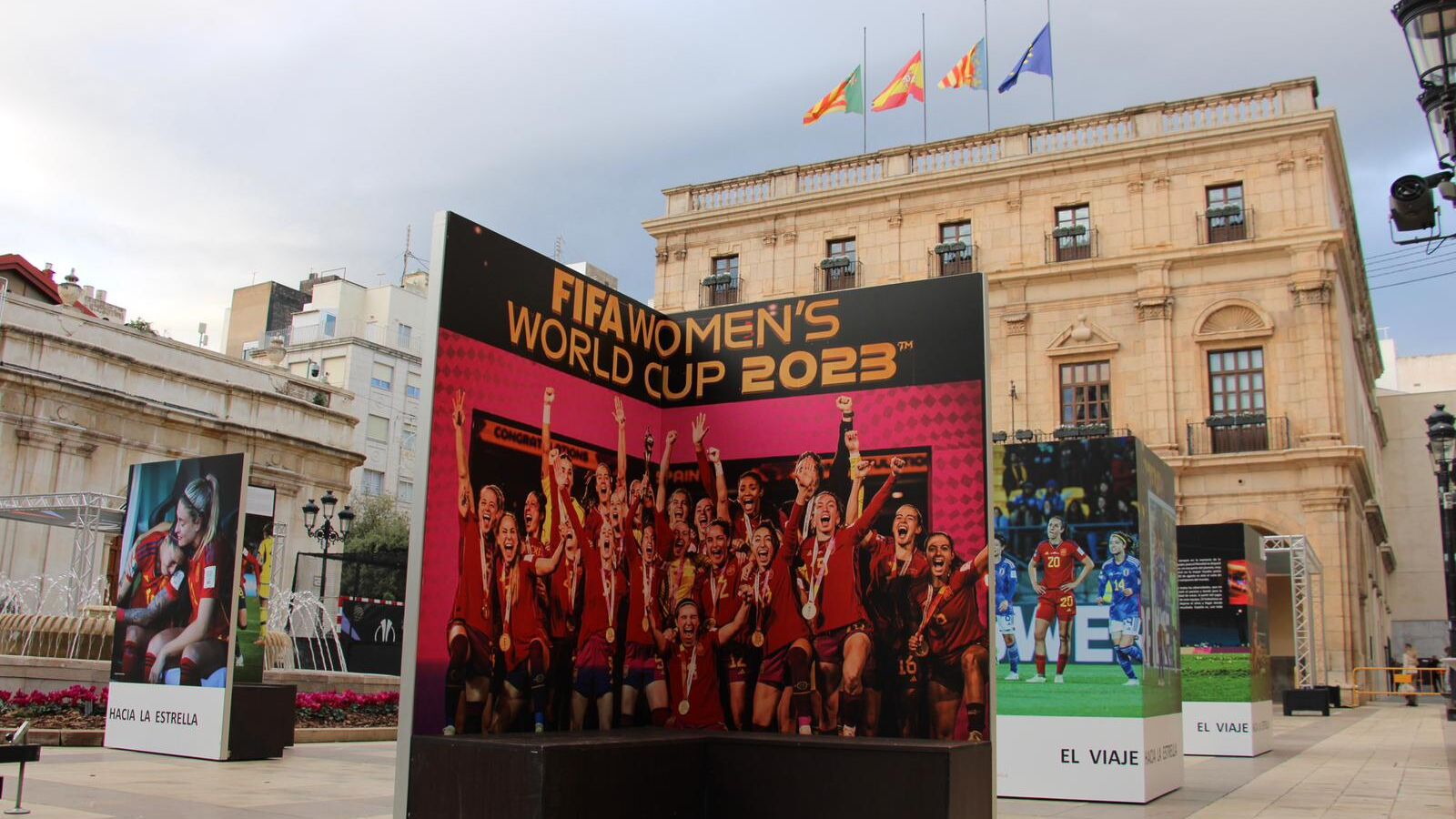Los principales trofeos conquistados por la selección española de fútbol femenino ya pueden visitarse en el Ayuntamiento de Castellón. El consistorio ha decidido retrasar la apertura de la Fan Zone prevista en la plaza Mayor en señal de duelo por el accidente ferroviario ocurrido en Adamuz (Córdoba).