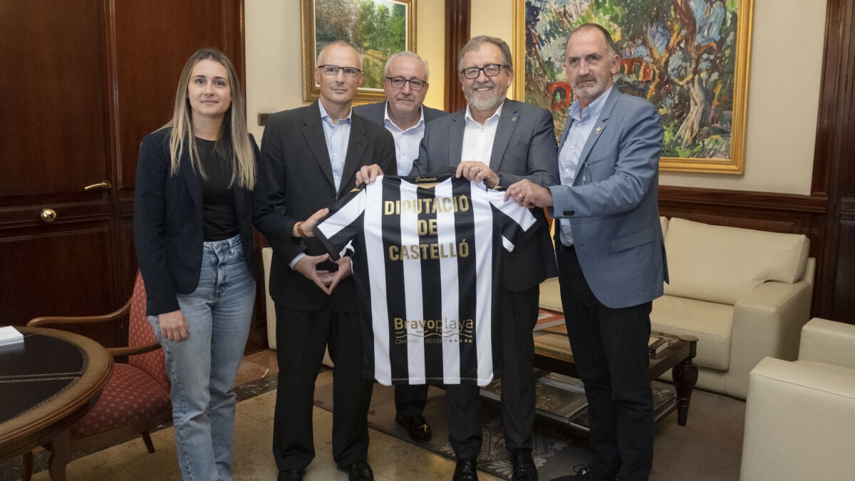El presidente de la Diputación de Castellón, José Martí, y la diputada de Deportes, Tania Baños, han recibido esta mañana a la nueva directiva del CD Castellón, encabezada por Richard Bentley, Robin Taylor y Ramón Villaverde, acompañados por el director de relaciones institucionales, Pepe Mascarell, quienes han trasladado el nuevo proyecto de club.