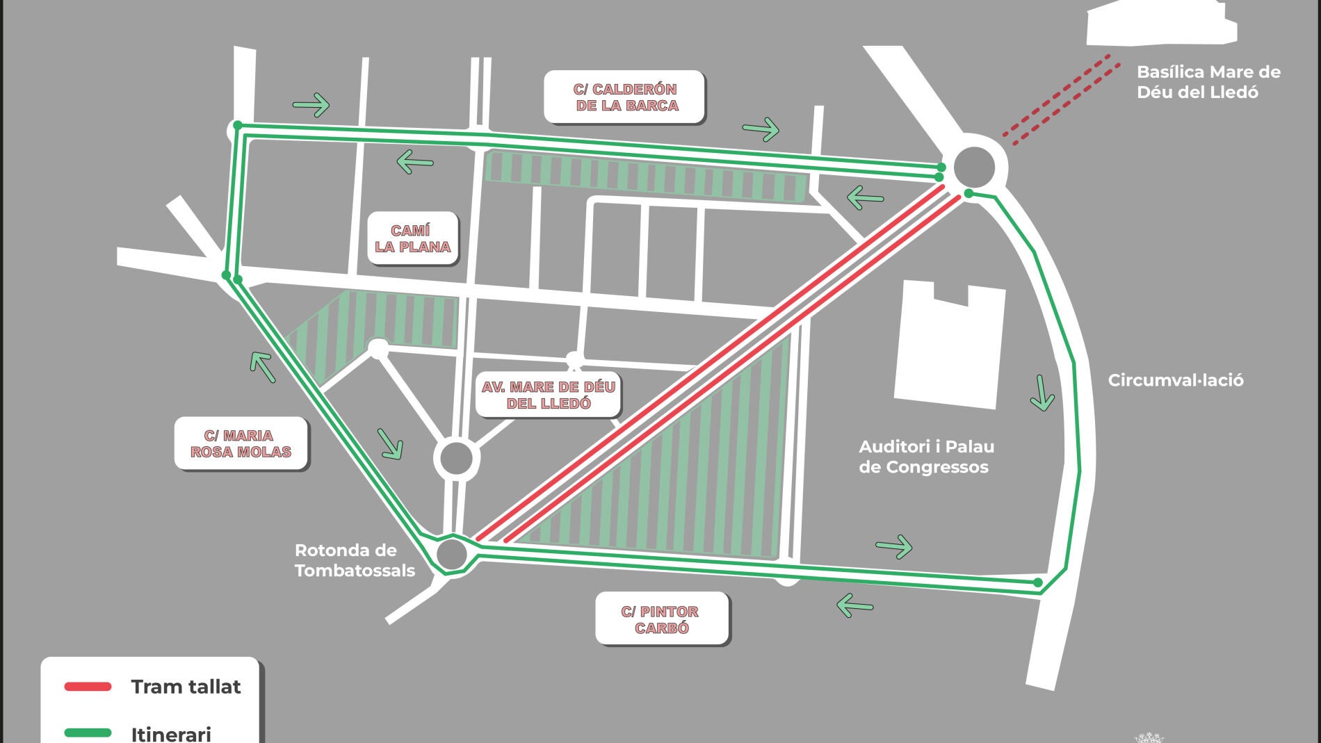 A partir del lunes 2 de mayo, se cortará al tráfico en este tramo el carril de la avenida en sentido de entrada a la ciudad (en dirección a la plaza María Agustina). Los vehículos particulares y el transporte urbano serán desviados por el itinerario alternativo, debidamente señalizado, habilitado a través de las calles Calderón de la Barca (que conecta con la rotonda de la ronda norte) y Rosa María Molás (con enlace a Tombatossals). También podrán circular por el carril de servicio de la ronda de circunvalación y el vial Pintor Carbó.