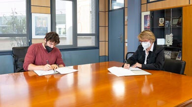 La rectora de la Universitat Jaume I, Eva Alcón, y el presidente del patronato de la Fundación Balaguer Gonel Hermanos, Ernesto Tarragón, han firmado una adenda al convenio que ambas entidades mantienen para extender la colaboración mediante el programa «Ayudas de la Fundación Balaguer Gonel Hermanos para movilidad internacional de los doctorandos y doctorandas».