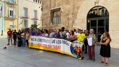 La ONG Aurora de Burriana se ha manifestado esta mañana en Valencia, junto a los responsables de las firmas consignatarias de los barcos de salvamento humanitario, a las puertas de la Generalitat por su intención de cobrar con retroactividad las tasas portuarias a los barcos de salvamento humanitario.