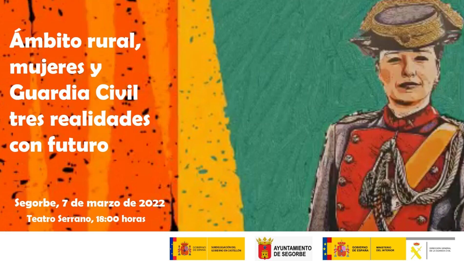 Con motivo de la celebración del Día Internacional de la Mujer, la Guardia Civil de Castellón celebrará el próximo lunes 7 de marzo a las 18:00 horas en el Teatro Serrano de la localidad de Segorbe, una jornada que bajo el título “Ámbito rural, mujeres y Guardia Civil, tres realidades con un futuro”, que acompañados de representantes de diversas organizaciones y asociaciones, abordará la igualdad de la mujer en el ámbito rural.