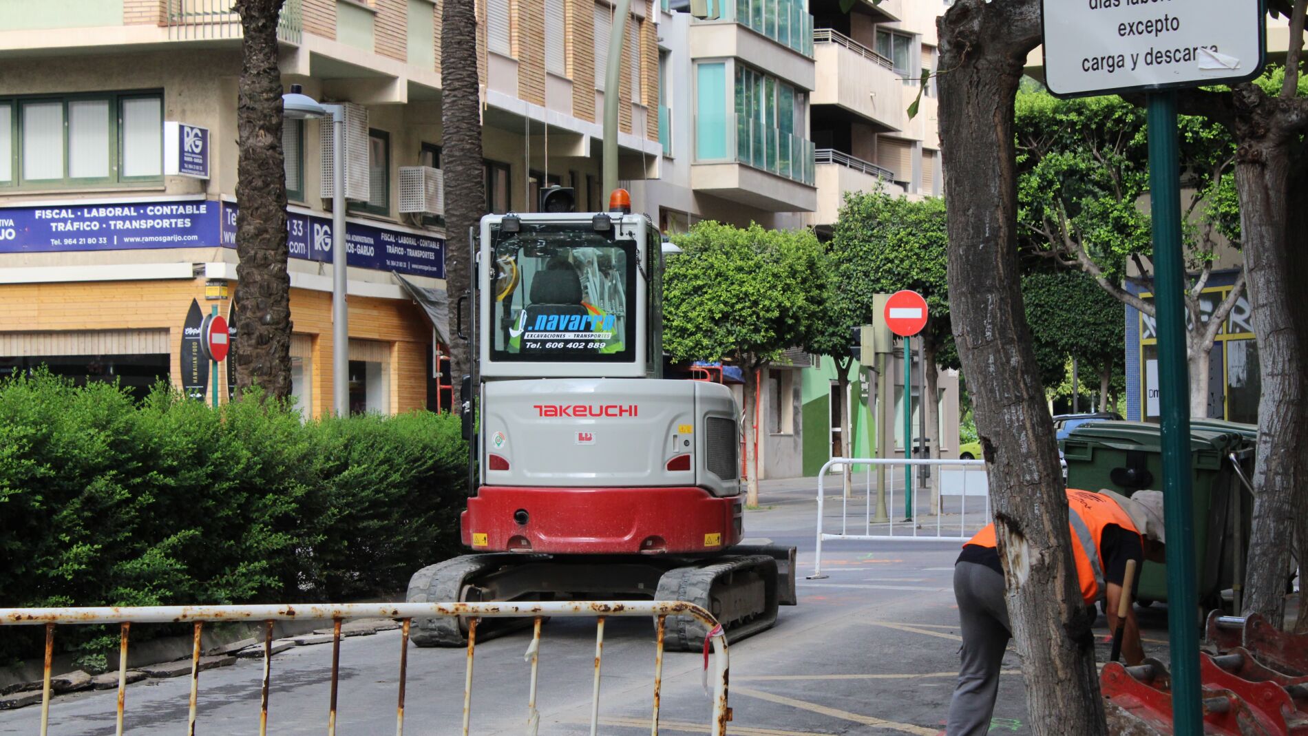 La calle Asensi también avanza. Los trabajos realizados en la acera sur han constado de los encintados, las excavaciones para instalar jardineras y se está colocando la rigola.