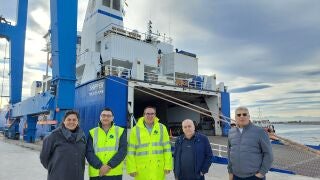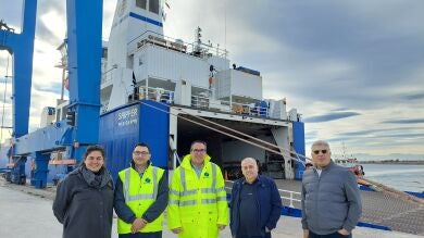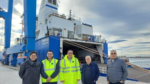 Rubén Ibáñez, presidente de la Autoridad Portuaria de Castellón junto con el director Manuel José García, han hecho entrega de una metopa conmemorativa de su primera escala en el puerto a su capitán. Rubén Ibáñez ha destacado que “es una primera nueva línea dentro de la estrategia que nos hemos marcado en la autoridad portuaria de atraer nuevos mercados y que nos va a conectar de nuevo, además de con Libia, con el resto de países europeos, puesto que se mueve a través de Italia y Portugal. Esto nos da posibilidades de acceder a nuevos mercados y que las empresas puedan trabajar mucho más en tránsitos con el puerto de Castellón tanto para la importación como la exportación”.