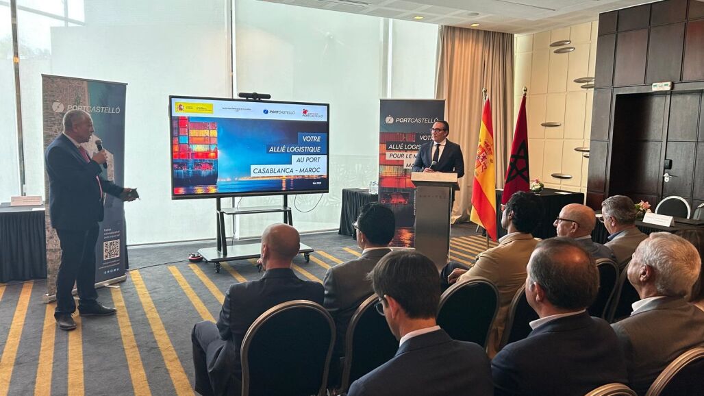 En la presentación ante el tejido empresarial marroquí, celebrada esta mañana, han participado también el director de PortCastelló, Manuel J. García, el director del Área de Internacionalización de la Cámara Comercio Castellón, Joaquín Andrés, la directora general delgada de la patronal marroquí, Samia TERHZAZ, el presidente de la Asociación de Freight Forwarders AFFM, Rachid TAHRI, El director regional de Casablanca , Rachid LMIMOUNI y el director general de la Asociación de Exportadores marroquí (ASMEX), Mounir FERRAM.