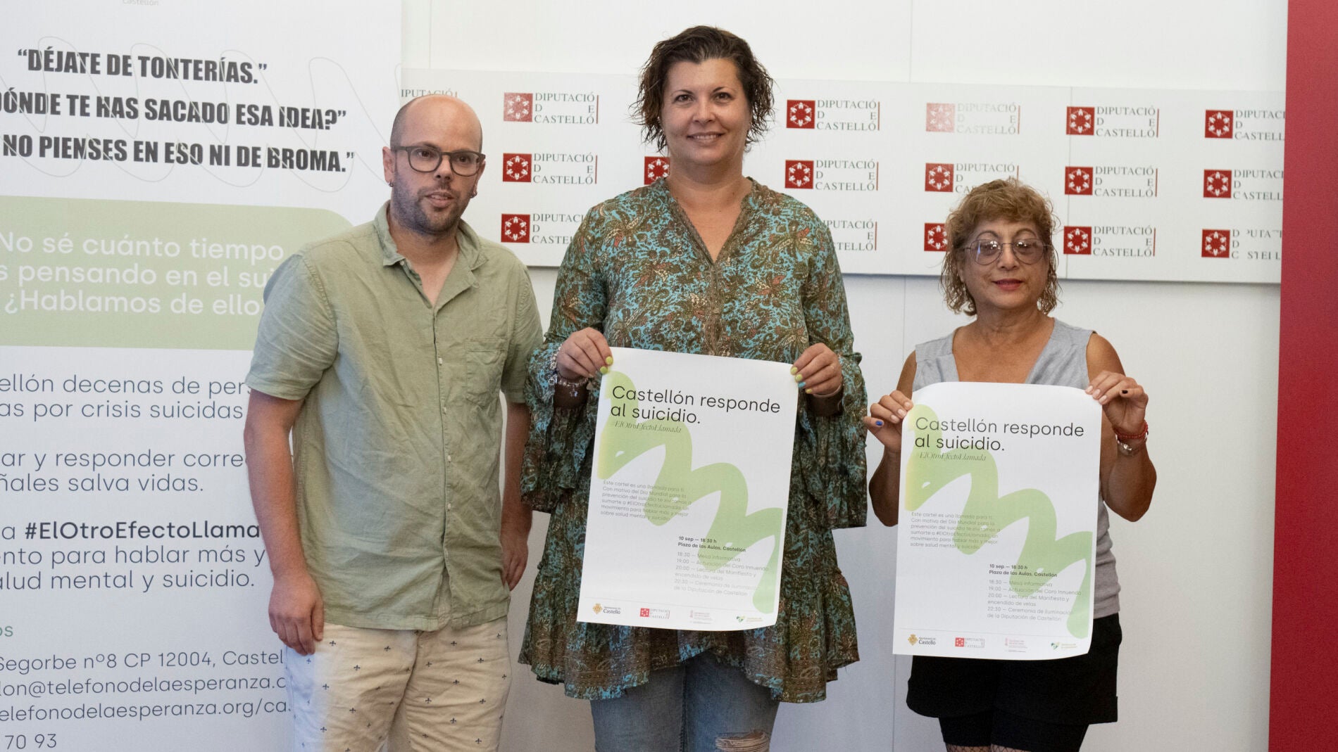 La vicepresidenta y diputada de Bienestar Social Patricia Puerta, y la presidenta del Teléfono de la Esperanza de Castelló, Eneyda Paz, han presentado hoy el programa de actos organizado con motivo del Día Mundial para la Prevención del Suicidio que tendrá lugar el próximo sábado 10 de septiembre. La jornada, bajo el lema ‘Castellón responde al suicidio. El otro efecto llamada’, pretende dar visibilidad a la problemática del suicidio, implicar a las administraciones públicas, ofrecer los servicios de ayuda del Teléfono de la Esperanza y formar e informar de cómo ayudar ante una situación de suicidio sin ser un profesional sanitario a través de la escucha.