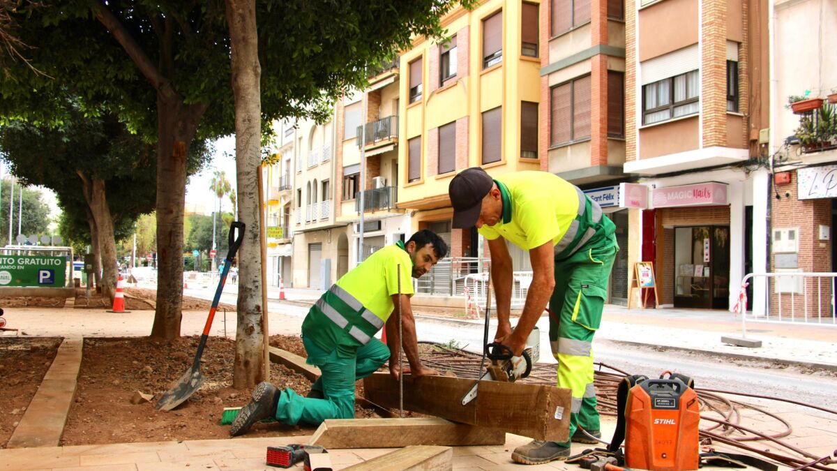 Otras zonas en las que se está trabajando es en la Plaza Clavé, “donde ya se ha instalado el porcelánico de la acera norte y el adoquinado y ahora se están situando los pasos de peatones”. En lo que respecta a Arrufat Alonso se ha trabajado en la zona de la Olivera con el porcelánico y ya está preparado para hacer la nueva parada de autobús”.