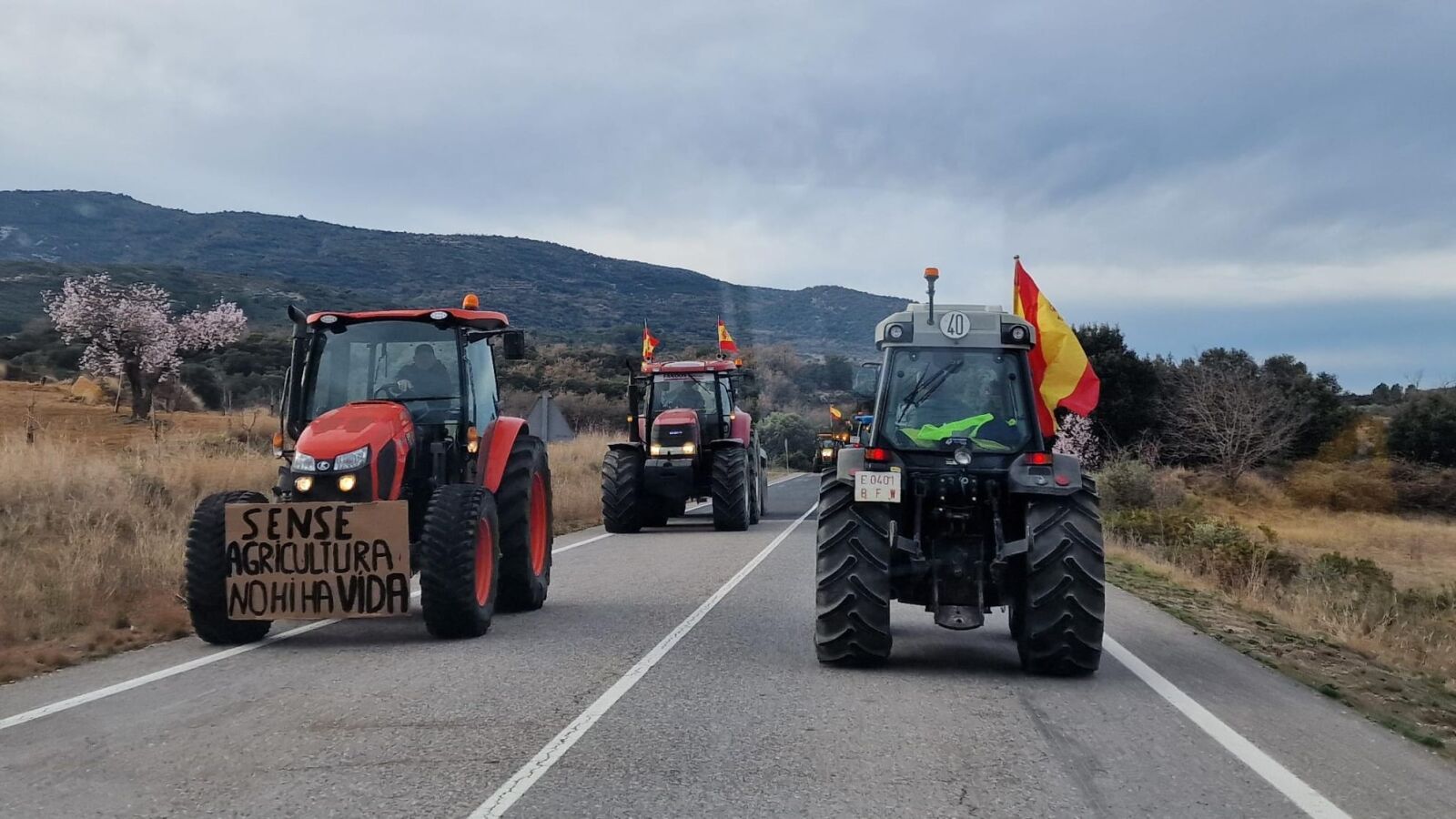 El sector primario insiste en que esta movilización no está amparada bajo el paraguas de ninguna organización agraria, que es una concentración espontánea y bajo el nombre "Plataforma 6F". Las zonas más afectadas a estas horas en la provincia de Castellón son la Nacional 340 a la altura de Vila-real y la N-232 en el término municipal de Morella, aunque también se han registrado incidentes en la CV-10 a la altura de Les Coves de Vinromà o la CV-15, a su paso por Albocàsser. Los agricultores afirman que "es el primer día y no vamos a parar", así como que "hacen falta un cambio de políticas". Ricardo Ciurana y Pepe Llop son algunos de los agricultores que se están manifestando en estos momentos.
