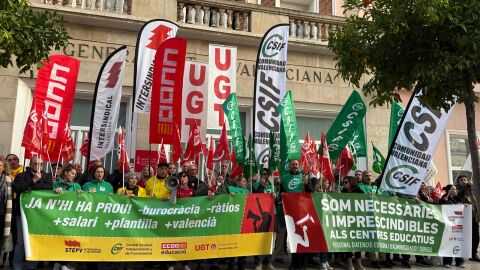 Los sindicatos de la enseñanza se han manifestado este jueves de manera simultánea en diferentes municipios de València, Alicante y Castelló para exigir al Gobierno valenciano mejoras laborales y educativas. La protesta ha reunido a docentes y también a personal de atención educativa (PAE) y personal de administración i servicios (PAS).