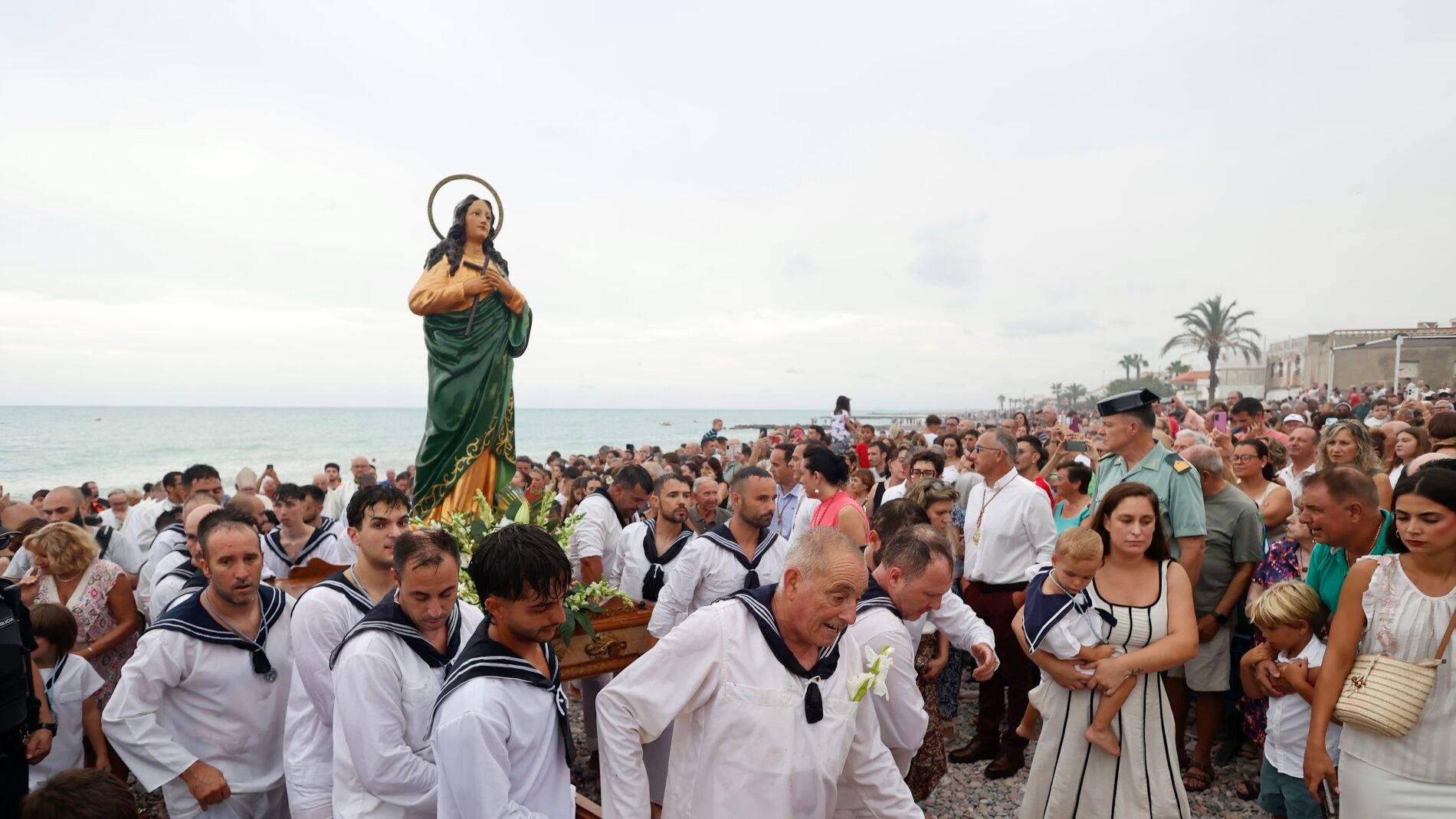 Aunque las condiciones meteorológicas no han permitido este año el desembarco por mar, la celebración se ha mantenido con plena emotividad y participación, siguiendo el formato tradicional que durante siglos ha unido al pueblo con su patrona.