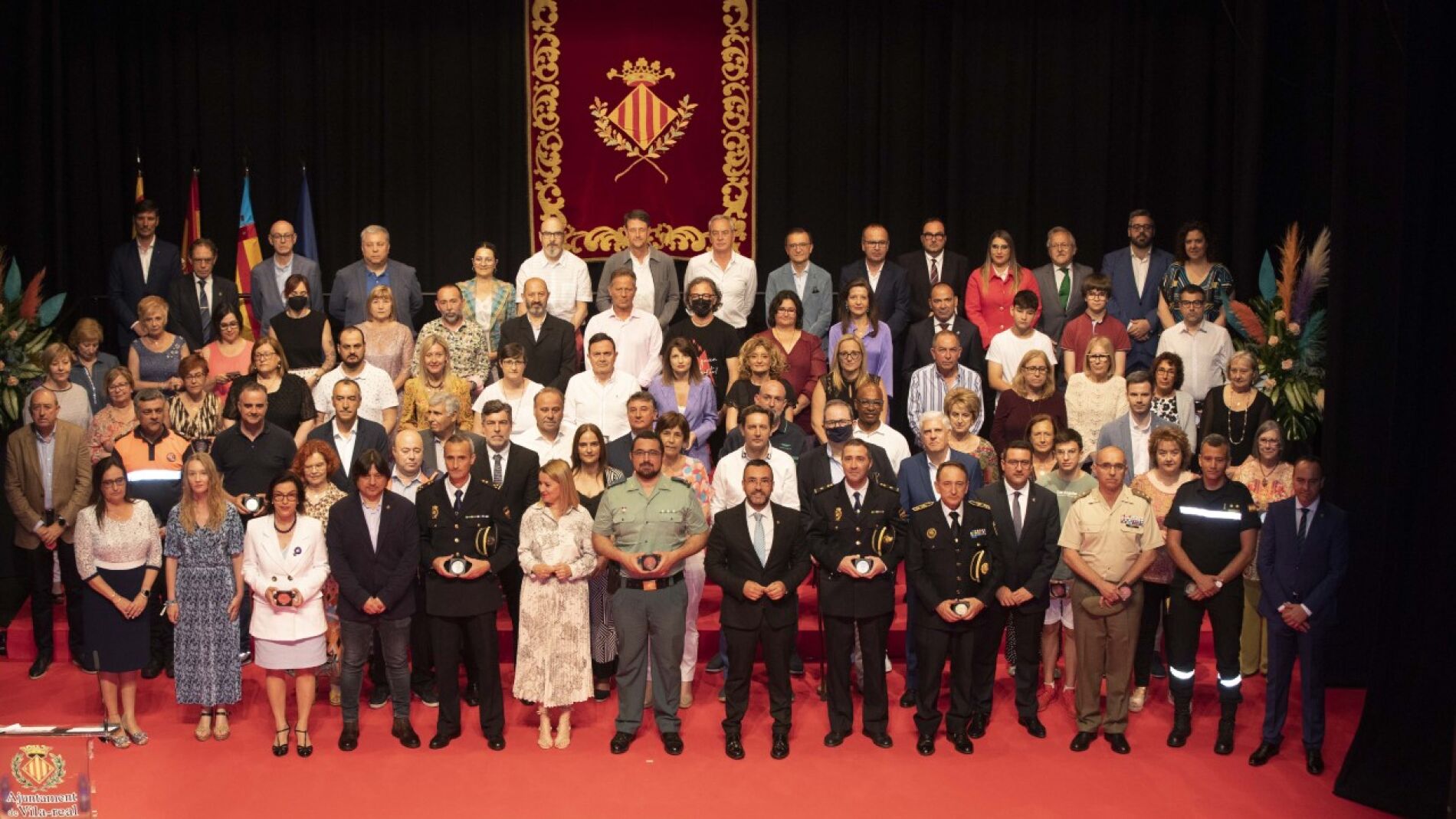 Cerca de un centenar de personas han subido al escenario del auditorio, en representación de la sociedad vila-realenses. Los héroes y heroínas de la covid-19 pasan así a formar parte del elenco de honores y distinciones de la ciudad.
