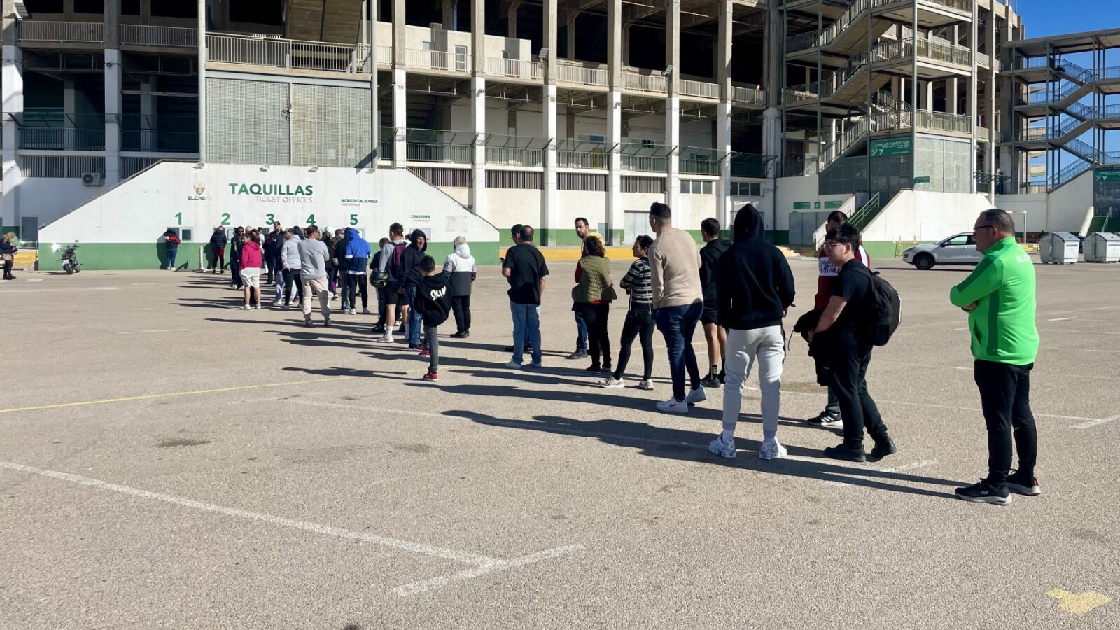 La afición del Elche CF ha demostrado que su pasión por el equipo está por encima de un resultado, tras la derrota ante el Amorebieta, al formar largas colas durante este martes con el fin de asegurarse entradas para el próximo enfrentamiento a domicilio contra el Cartagena. El club franjiverde ha puesto a la venta 780 localidades, las cuales se agotaron prácticamente en cuestión de pocas horas.