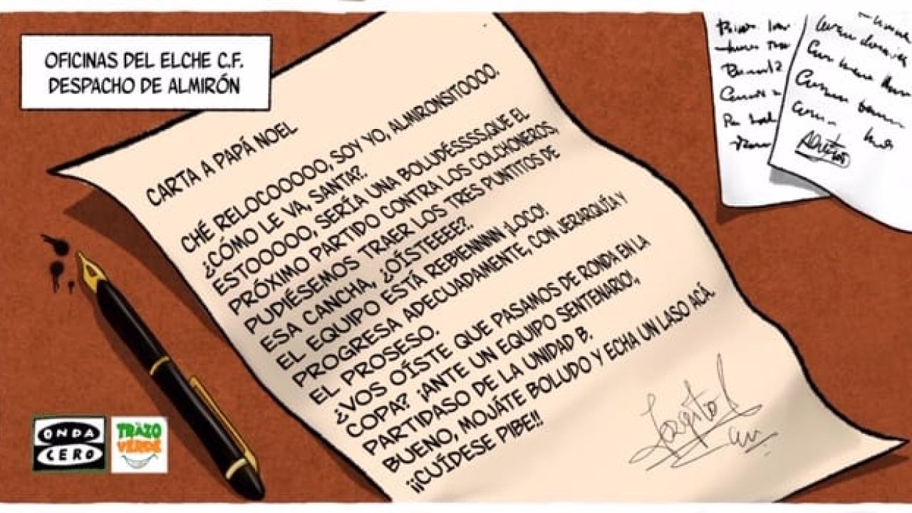 ¿Qué le pedirá Jorge Almirón a Papa Noel? Seguro que salud y buenos deseos, pero también algún buen resultado en lo que queda por disputar en la recta final de este año. El Elche se mantiene a tres puntos de los lugares de descenso cuando todavía quedan los partidos frente a Atlético de Madrid, Osasuna y Real Madrid antes de estrenar 2021.
