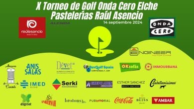 Colaboran, Coca Cola, Royal Bliss, Cervezas Ámbar, Castellanísimos, Imed Elche, Vinos Brotons Selección, Buy Golf Spain, Anís Salas, Publitoral, Digitot, Alenda Golf y Uvas Antonio Berná e hijos.