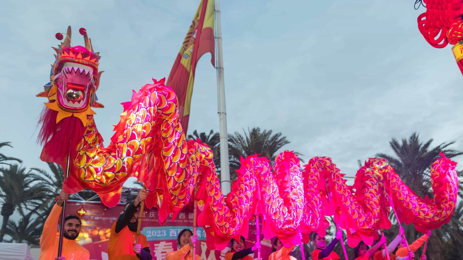 Durante la tarde, antes de que acabasen los actos programados, tuvo lugar el tradicional desfile del dragón, las diferentes autoridades intervinieron como fue el caso de el presidente de la Asociación de Empresarios Chinos de España, Chen Hui, el director del Instituto Confucio de la Universitat de València, Vicente Andreu o el comisario del Cuerpo Nacional de Policía de Elche, Pedro Montore.