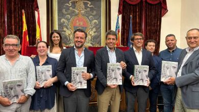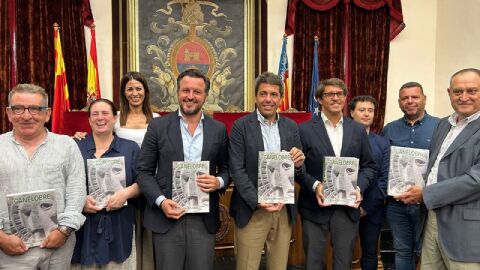 El alcalde de Elche, Pablo Ruz, junto al presidente de la Diputación, Carlos Mazón, y algunos de los autores de esta revista como Antonio Zardoya, Gaspar Maciá y la directora cultural del Instituto Juan Gil-Albert, Pilar Tébar, han presentado el número 74 de la revista Canelobre.