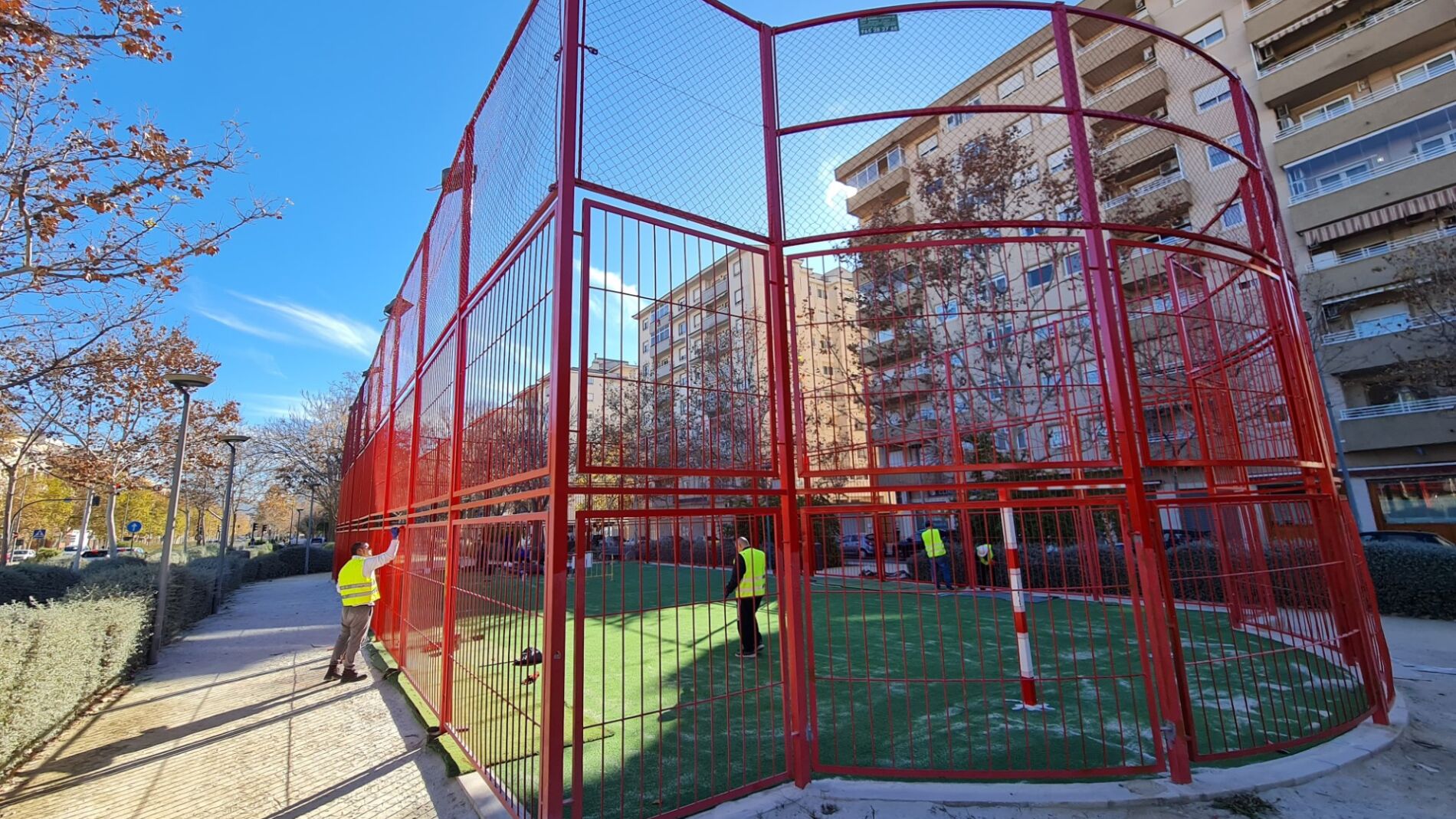La Concejalía de Espacio Público del Ayuntamiento de Elda ultima las obras de renovación de la pista deportiva urbana situada en la Avenida de Ronda, junto a la avenida Camilo José Cela, con el objetivo de mejorar la calidad del pavimento deportivo y la seguridad de toda la cerrajería del vallado perimetral de la cancha.