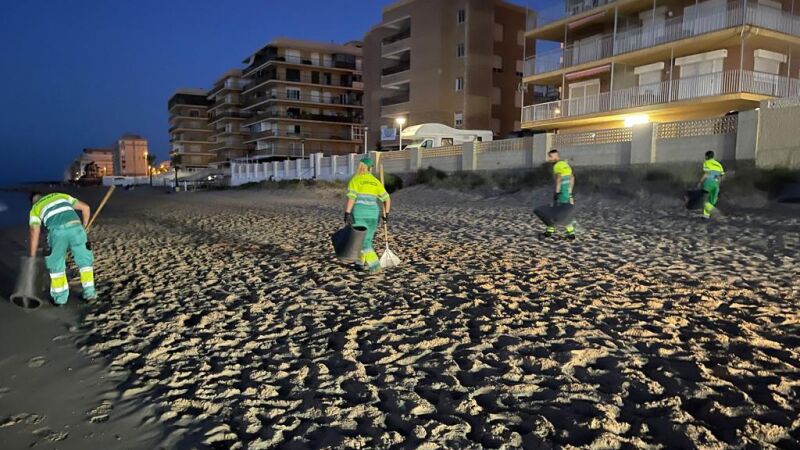 El dispositivo extraordinario de limpieza desplegado en el litoral ilicitano ha estado integrado por más de 40 trabajadores y trabajadoras, así como que ha contado con máquinas limpia playas, volquetes, camiones cisternas, baldeadoras y barredoras, todoterrenos y material auxiliar.
