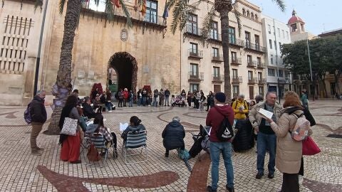 Por tercer mes consecutivo, integrantes del Club de Lectura de la Casa de la Dona de Elche, adscrita a la Concejalía de Mujer del Ayuntamiento ilicitano, se movilizaron en sábado en la plaça de Baix exigiendo la reapertura de ese espacio.