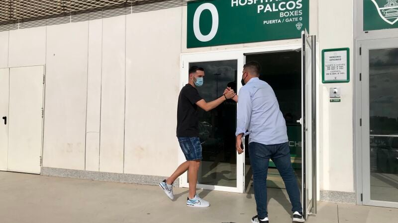 El nuevo delantero del Elche, que el 10 de septiembre cumplirá 33 años ataviado con su mascarilla se ha metido rápidamente en las oficinas para terminar de perfilar los últimos detalles de su contratación, por una temporada, y conocer las instalaciones de la que será su casa a lo largo de la presente temporada.