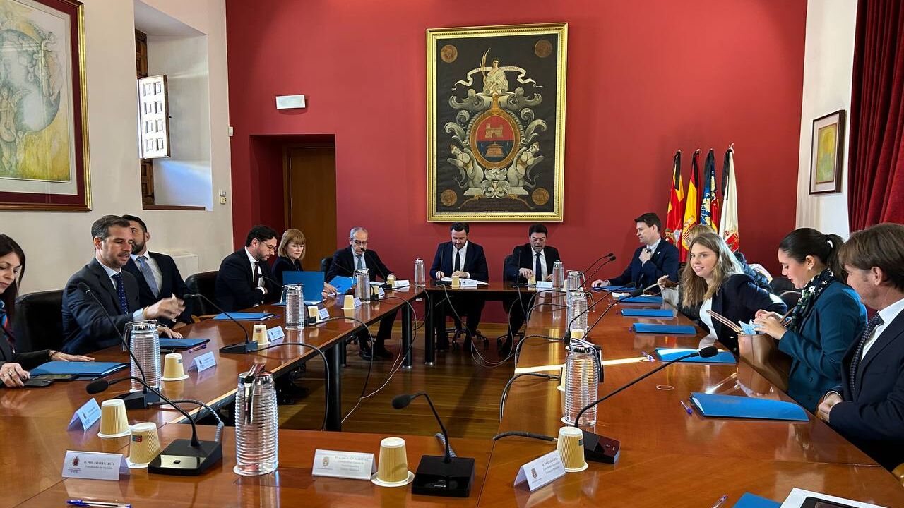 El alcalde ilicitano, Pablo Ruz, y el primer edil alicantino, Luis Barcala, junto con concejales y concejalas de diferentes áreas municipales de los dos municipios, han mantenido este miércoles una reunión en el Ayuntamiento de Elche, en la que se ha abordado esa colaboración estratégica en torno a un eje de actuación conjunta en materia, entre otros ámbitos, de infraestructuras, promoción turística, transporte, cultura, empleo y deportes.