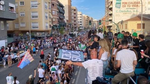 Elche está de fiesta. La ciudad se ha echado a la calle desde el pitido final en Riazor, donde el Elche CF certificó el ascenso a Primera División. Este lunes es un día señalado con la rúa del equipo franjiverde. Decenas de miles de seguidores acompañan a la plantilla de Eder Sarabia.