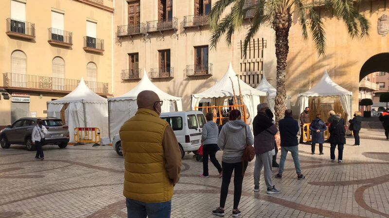 Las colas que se ha vivido este viernes desde primera hora en la Plaça de Baix, que es el espacio en el que se han instalado trece puestos de venta de palma blanca, constatan que la tradición sigue viva pese a la covid-19.