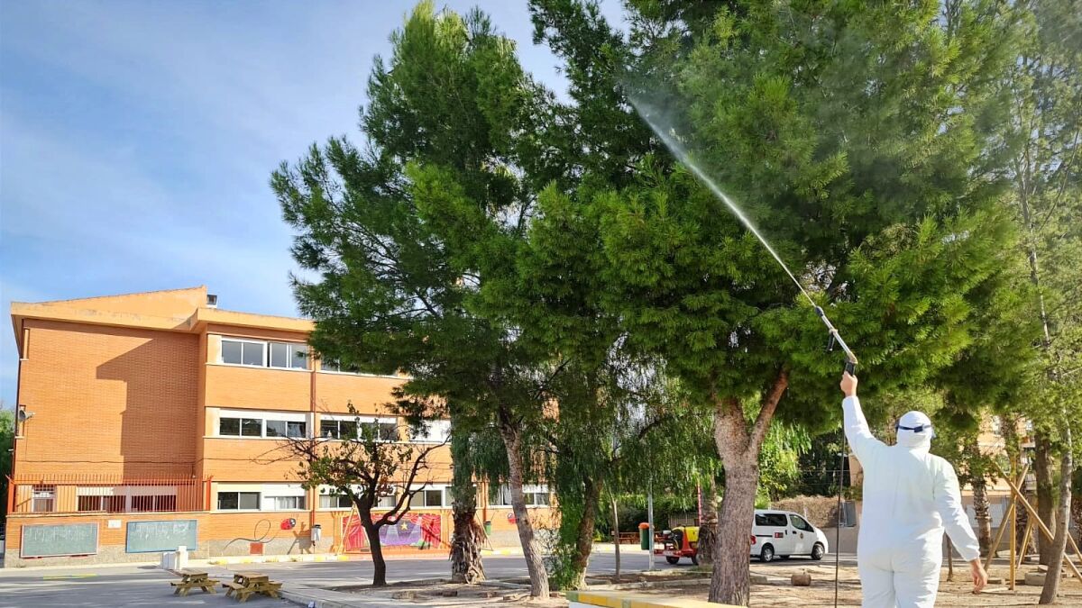 El Ayuntamiento de Elda ha comenzado a aplicar la aplicación de un tratamiento preventivo contra la procesionaria tanto en los parques y jardines de la localidad como en los diferentes centros escolares públicos, con el objetivo de evitar la formación y reproducción de las larvas antes de su desarrollo en las semanas previas a la primavera.