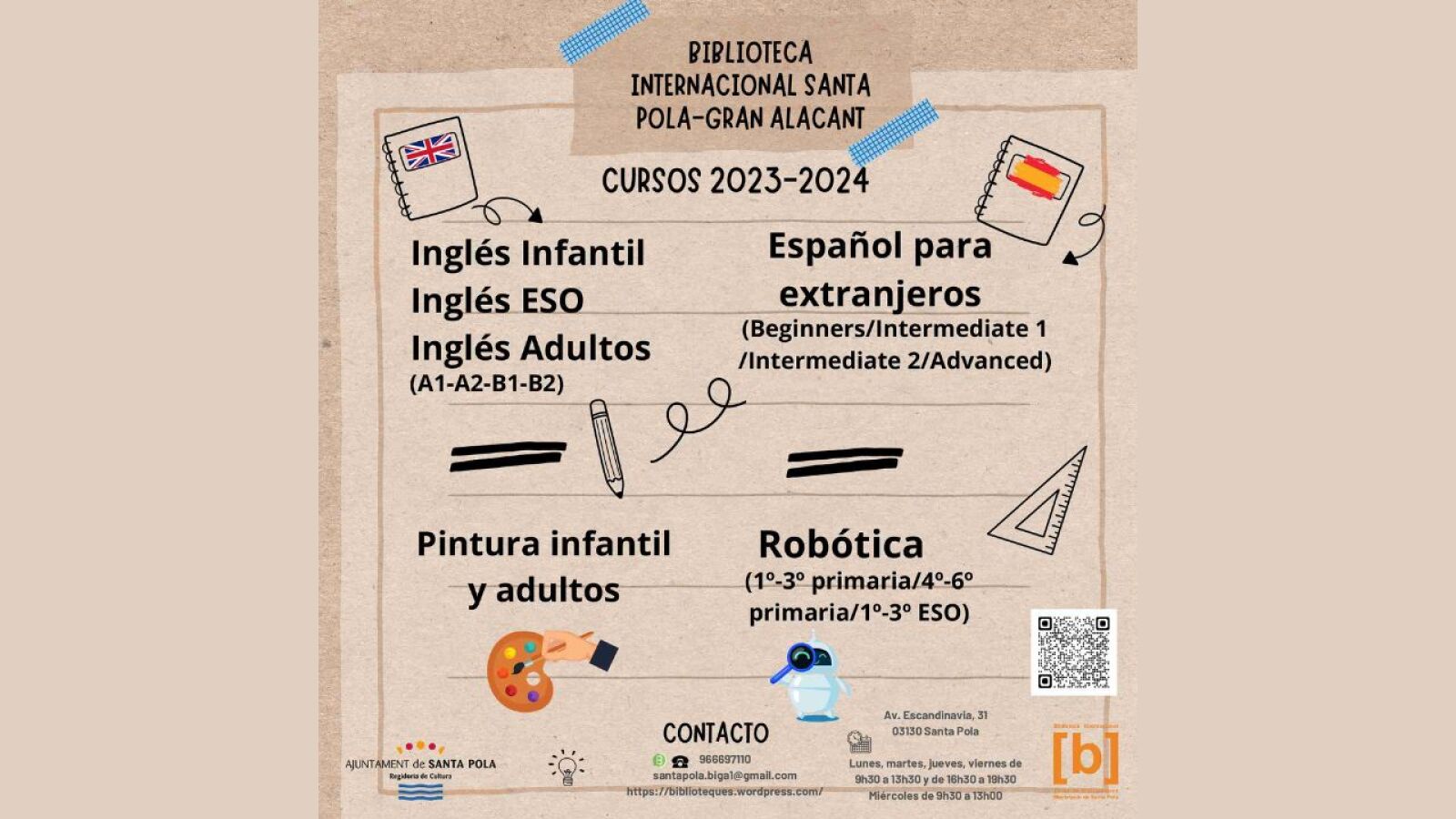 Gran Alacant ha anunciado el programa cultural de los talleres que oferta la Biblioteca Pública para el curso 2023-2024. Como no puede ser de otra manera, en una zona tan internacional la principal oferta de la biblioteca son los idiomas. Las preinscripciones comenzarán el 11 de septiembre y acabarán el 20 del mismo mes y, cabe añadir que la elección de los solicitantes se realizará mediante un sorteo entre las personas que se preinscriban entre los días indicados.