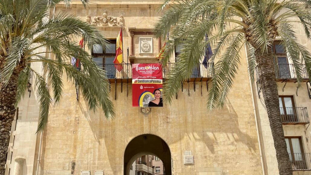 En la lona que cuelga desde el balcón principal del Ayuntamiento de Elche, se ve la imagen de Blanca Paloma con el nombre de Eurovisión Song Contest United Kingdom Liverpool 2023, con la fecha de la celebración y el hashtag que ha querido difundir el Consistorio ilicitano como apoyo a su paisana: #ConBlancaPaloma. El desplegable se representa con los colores de la bandera de España, a la que representará en el Festival que se celebrará en el Reino Unido.