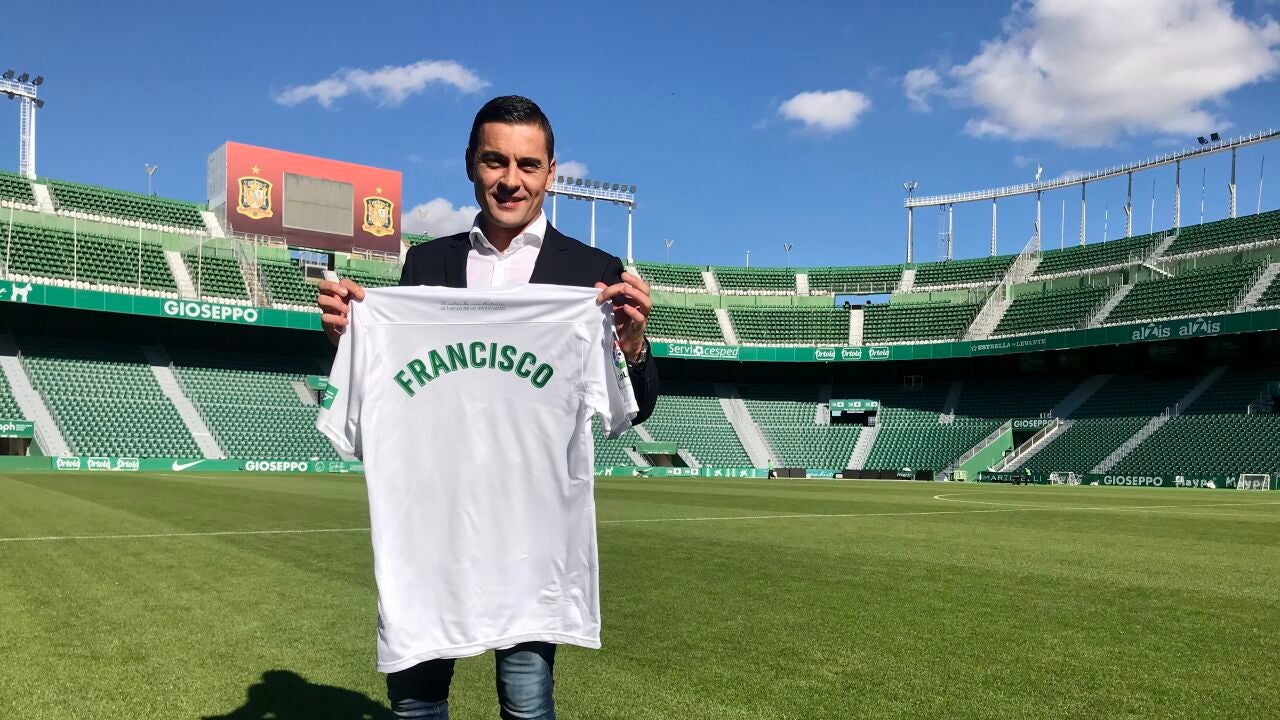Francisco ha ofrecido buena impresión en su presentación, en la que ha estado acompañado por el presidente del Elche, Joaquín Buitrago; su equipo de trabajo, formado por su preparador físico Sergio Pardo, su segundo entrenador José Manuel Rodríguez 'Ortega' y su analista Jaime Ramos; además de su representante, Joaquín Vigueras, y el secretario técnico, Sergio Martínez 'Mantecón', que este pasado lunes dirigió al equipo desde el banquillo de El Sadar.
