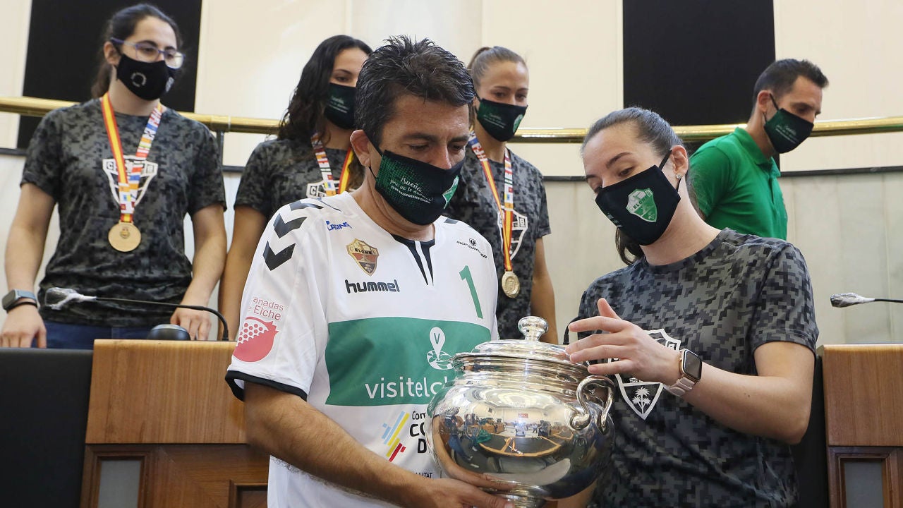 El Club Balonmano Elche sigue de fiesta y de celebraciones. La plantilla del equipo franjiverde ha sido recibida este jueves por el presidente de la Diputación de Alicante, Carlos Mazón, en el Salón de Plenos del Palacio Provincial, tras proclamarse, el pasado domingo, campeonas de la Copa de la Reina celebrada en Gran Canaria.