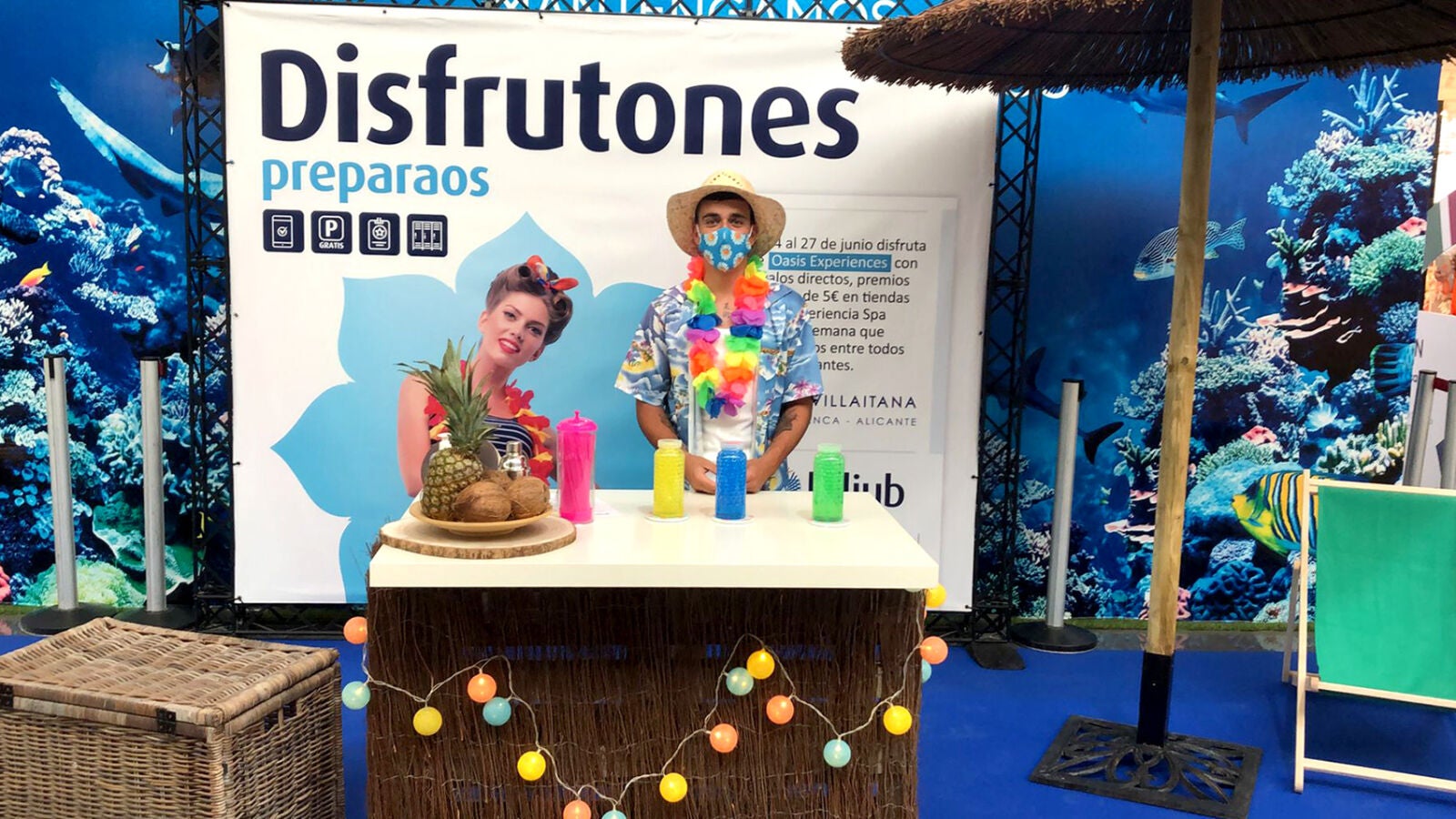 Para esta campaña, L’Aljub ha creado un espacio que simula la barra de un lujoso resort. Una veraniega instalación en la que un camarero repartirá fabulosos premios. Todo con el objetivo de dar a conocer el nuevo concepto emocional de L’Aljub ‘Destino Oasis’, el centro comercial como un destino de experiencias y de disfrute para toda la familia.