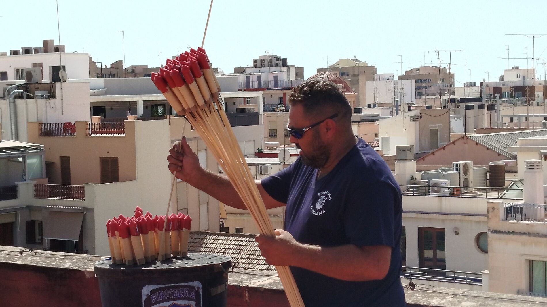 Hoy se ha comenzado a montar el material de terrazas correspondientes a los fuegos de ‘color’ y el día trece por la mañana se montará el suelo que corresponde al sonido atronador de la alborada. En total, los puntos de disparo de las terrazas serán 14 mientras que los del suelo sumarán 22 repartidos por todo Elche.