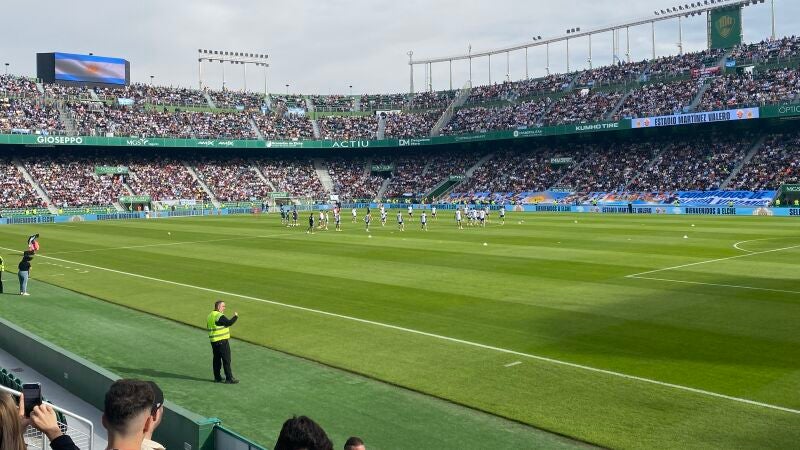 Messi es el principal atractivo de la campeona del mundo. Los aficionados presentes en el Martínez Valero han coreado el nombre del astro en una sesión que ha comenzado unos minutos después de las 10:30 horas. Los futbolistas han saltado con el himno de Argentina por la megafonía del estadio.