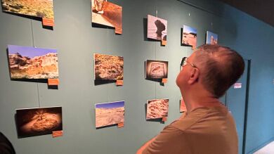 La exposición consta de 53 fotografías que muestran parte del rico patrimonio geológico del término municipal de Elche y del MUPE, que llevan al visitante a recorrer desde los paisajes que muestran las rocas más antiguas del término municipal hasta las arenas de la playa.