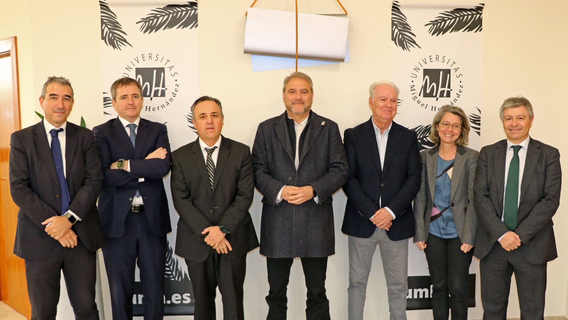 La firma del convenio fue llevada a cabo por el rector de la Universidad Miguel Hernández de Elche, Juan José Ruiz, y el director general de IMED Hospitales, Ángel Gómez, asistiendo al acto, la vicerrectora de Transferencia e Intercambio de Conocimiento de la UMH, María José López; el catedrático de Ingeniería de Sistemas y Automática y director de la nueva Cátedra, Nicolás García; el director gerente de IMED Levante, Luis Cuenca; el director de relaciones institucionales de IMED Hospitales, Enrique Ibáñez; y Enrique Mora, asesor sanitario de la cátedra.