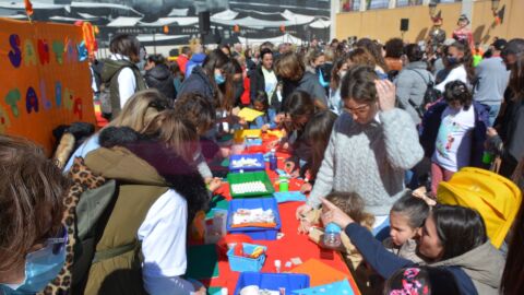 La plaza del Ayuntamiento de Pinoso y alrededores se convirtieron este pasado domingo en el escenario de una fiesta con motivo de la Trobada de Escoles en Valencià, cuya celebración en la localidad de la comarca del Medio Vinalopó ha cumplido su quinta edición.