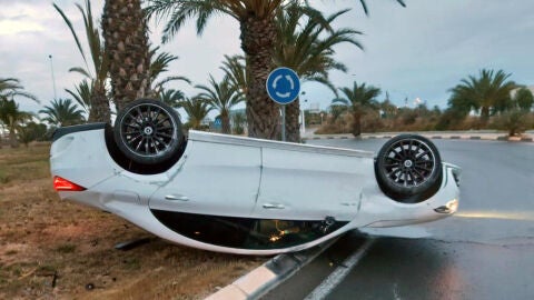 La Policía Local de Elche ha asistido a primera hora de este domingo un accidente de tráfico ocurrido en una de las rotondas de circulación de la Ronda Norte en el que se ha visto implicado un único vehículo que ha quedado volcado en la propia rotonda y cuyo conductor ha huido del lugar.