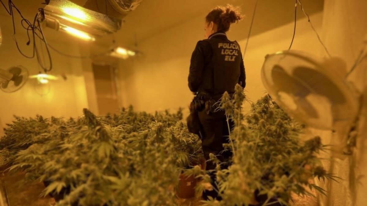 La Policía Local de Elche ha detenido a dos personas, un hombre y una mujer, acusadas de un presunto delito contra la salud pública ya que en el interior de la vivienda del barrio Los Palmerales en la que residían los agentes encontraron una plantación de marihuana.